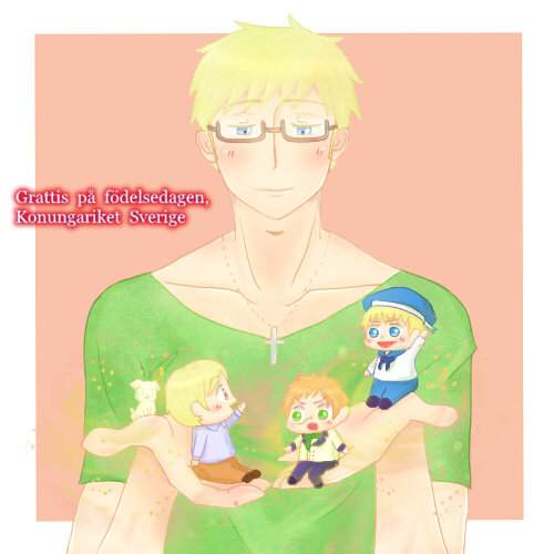 本日6月6日は私の旦那であるスーさんこそベールヴァルド・オキセンスシェルナさんの誕生日です。多分APH界一幸せな家庭を築いている彼。嫁を愛し、子供たちを愛し、ペットも愛してやまないその優しくて素朴な感じが本当に癒されます。まぁ時々顔怖いですけど・・・好きなキャラというくくりではなく、単純に旦那にしたいキャラのアンケとったら上位3人に入るであろう事は容易に想像できます。だって家具屋さんに住んでるんだよ!日曜大工得意だし、眼鏡だし、料理も美味しいし、背も高いし、眼鏡だし、ペットに芸を仕込むのもできるし、眼鏡だし!!!そんなわけで、彼だけは俺の嫁ではなく旦那です。
